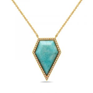 • 14kt Gold Kite Shaped Necklace With 5.35ct Amazonite and 52 Diamonds (0.18ct.tw)