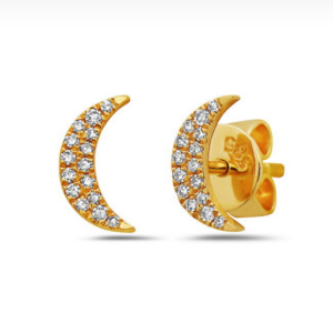 14K Yellow Gold Half Moon Earrings With 30 Round Diamonds (0.07 ct.tw)