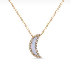14K Yellow Gold Half Moon Necklace With Mother Of Pearl & 34 Round Diamonds (0.11 ct.tw)