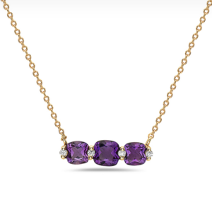 14K Yellow Gold Necklace With 3 Cushion Cut Amethysts (0.61 ct.tw) & 4 Round Diamonds (0.03 ct.tw)