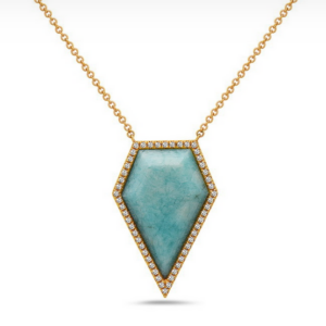 14K Yellow Gold Necklace With Kite Shaped Amazonite & Diamonds