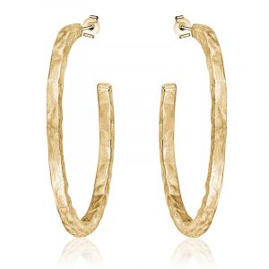 • Gold Plated Hammered Hoop Earrings – Matte Finish